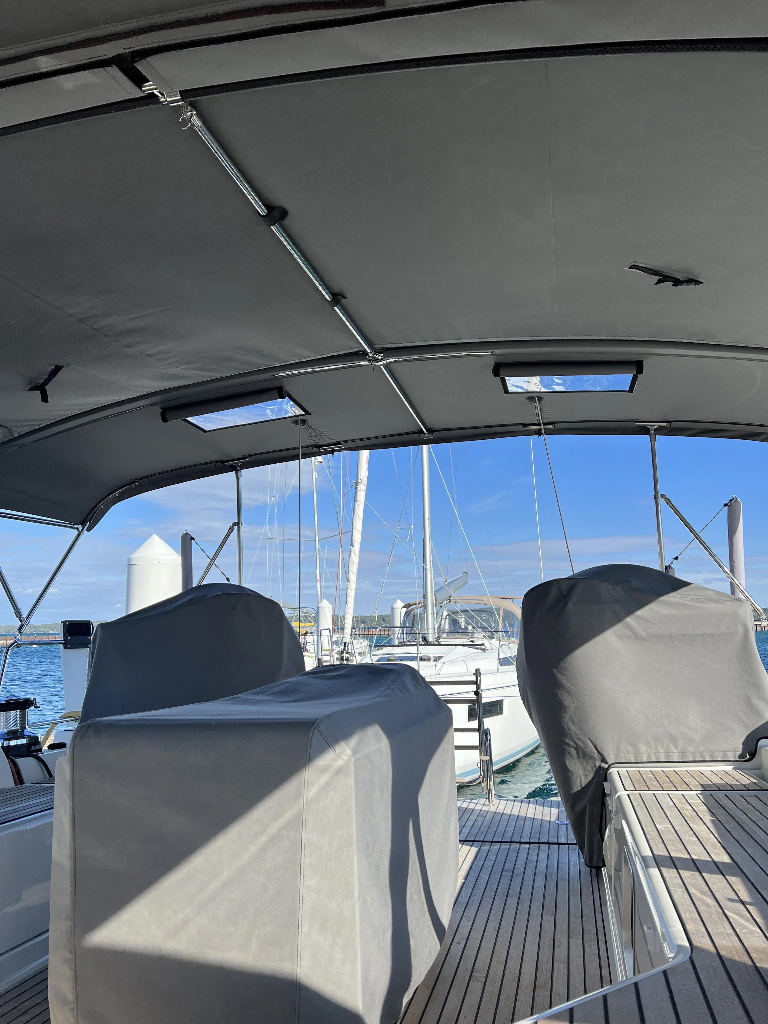 Expansive Mediterranean cockpits present some unique challenges and opportunity to blend sun, wind, and rain protection while still giving you options when the weather is fair.
